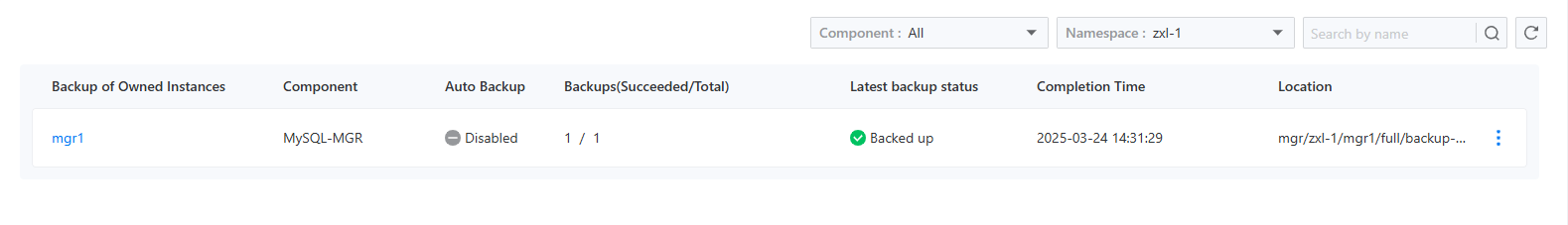 This page allows direct querying of the backup resources of the corresponding component, and detailed information can be found in the backup recovery documentation for the respective component.